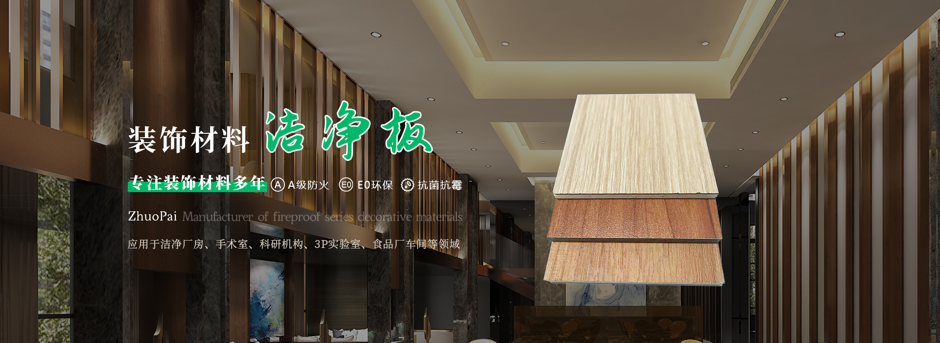 常州市卓派裝飾材料有限公司是一家專業生產:冰火板、金屬復合板、美麗板、吸音板、防火陶鋁吸音板、防火飾面板、醫療板、隧道防火板、蛭石吸音板等防火系列裝飾材料的生產廠家。 本公司的產品都用于:進步制造業的潔凈廠房、手術室、科研機構、3P實驗室、食品廠車間、科研機構、實驗室、其它機房、其它控制主要、危險品貯存空間、防爆車間的墻體系統、高低層商務大廈、展架、幕墻、酒店屏風隔斷、隧道、餐廳、別墅、低層豪華住宅、新型住宅、地鐵、電梯、走廊、寫字樓、電視臺、演播廳、消音室、錄音棚、影劇院、酒店、多功能廳、休閑場所、展覽館、音樂廳、演播廳、各會議廳(室)、候機大廳等對視聽有其它要求的建筑區域...